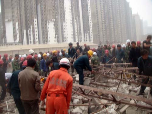 燕郊塔吊倾圮过车辆被压 现场有火花四溅(现场